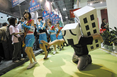 sangangang:重慶的房交會(huì)很少看到這樣的行為藝術(shù),有創(chuàng)意!