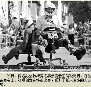辦公轉(zhuǎn)椅競逐賽在瑞士誕生,巴特柯尼希鎮(zhèn)一家青年俱樂部的成員將這項趣味運動略加變通后,于去年在鎮(zhèn)上舉辦了首屆比賽。引得世界各地的媒體競相報道。