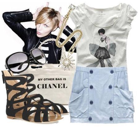 清爽海洋風格的高腰裙,舒適自然,不能少了今夏大熱的角斗士涼鞋。