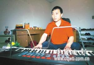 簡廣榮想起女兒,就胡亂地敲擊電子琴。 記者 張質(zhì) 攝