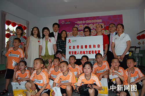 中新網(wǎng)6月3日電 5月30日,我國艾滋病宣傳大使、臨汾紅絲帶學(xué)校名譽校長、著名演員濮存昕和青年歌手李丹陽、中國青少年發(fā)展基金會副秘書長汪敏、寶健(中國)日用品有限公司副總裁蔡尚榮、寶健山西臨汾的代理商們等一行走進山西臨汾“綠色港灣”,為紅絲帶小學(xué)的艾滋病患兒們送去了節(jié)日的禮物和溫馨的祝福。