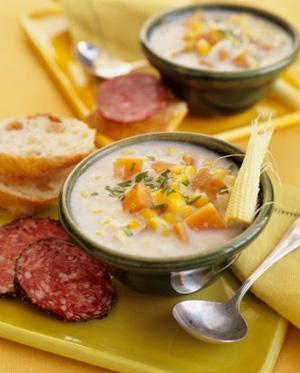 湯類非常有益健康,而且價格低廉、易于制作?墒牵扪b濃湯是由鹽、脂肪、人造添加劑、防腐劑,或許還有一些脫水胡蘿卜調(diào)制成的營養(yǎng)價值非常低的“混合物”。一罐濃湯含1000毫克鈉,大約是你每天所需量的一半。因此,還是自己準(zhǔn)備雞肉、牛骨和蔬菜,親手做一碗熱騰騰、香噴噴的湯吧。