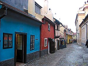 從修道院通往城堡的小街居然就是著名的黃金小巷。這巷子的出名其實是因為卡夫卡曾經(jīng)住在這里,并完成了我們熟悉的小說《城堡》。黃金巷是一條由磚石鋪成的街道,街道很窄,原是皇室仆役聚居的處所,后來這里聚集了很多煉金術師,黃金巷由此得名。