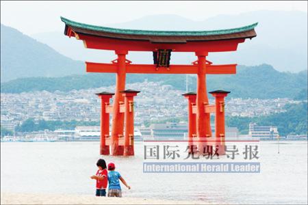 于廣島附近的嚴(yán)島神社是世界文化遺產(chǎn),其中聳立在海上的“大鳥居”被譽(yù)為日本三景之一。記者 任正來/攝