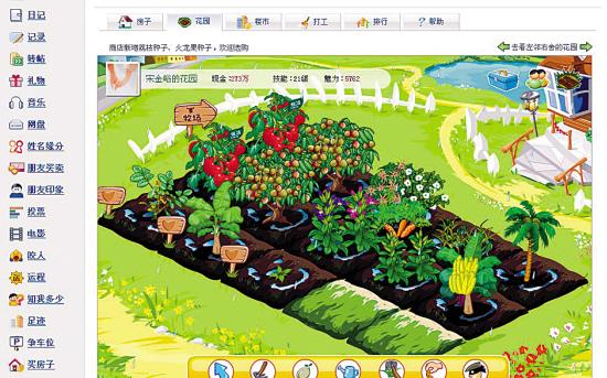 不過,“偷菜”并非王儀涵、蔡赟、朱芳雨、鄭潔、鄒凱等體育明星們所專美,玩得更多的是城市里一堆年輕的白領(lǐng)們,或者緊張兮兮或者偷偷摸摸,玩著這個(gè)幾乎是今年上半年網(wǎng)絡(luò)上最火的游戲———每日上班的第一件事情,打開電腦,上網(wǎng),收獲一下自家菜地里的雪蓮和農(nóng)場(chǎng)的牛奶,轉(zhuǎn)發(fā)幾個(gè)好玩的視頻給身邊的朋友,然后再寫個(gè)真心話大冒險(xiǎn)暗爽一把……