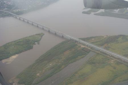這是從飛機上航拍的哈巴羅夫斯克市內(nèi)的阿穆爾河(黑龍江)大橋,這不是界橋,這一段的阿穆爾河是俄羅斯的內(nèi)河。