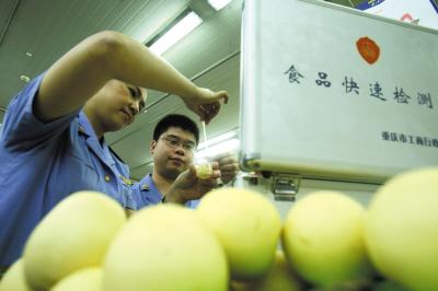 經(jīng)開(kāi)區(qū)某超市,工商工作人員用食品快速檢測(cè)箱檢測(cè)食品安全 記者 歐陽(yáng)祖兵 攝