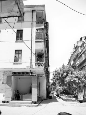 女生就是從這棟民房的四樓(畫圈處)爬水管下來時(shí),不慎從三樓(箭頭處)墜落