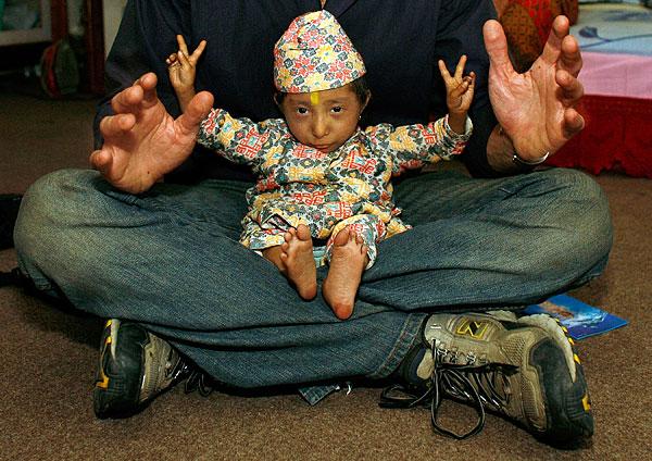 到2009年10月份年滿18歲時(shí),現(xiàn)身高51厘米、體重4.5公斤的尼泊爾人卡根德拉·塔巴·馬加爾(Khagendra Thapa Magar)或?qū)⒊蔀榧崴故澜缂o(jì)錄里最矮的人。