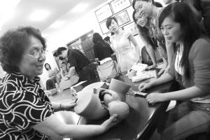 產(chǎn)科專家蓋教授(左)為“產(chǎn)科高級生命支持教程”培訓(xùn)班講課 記者 姚波 攝