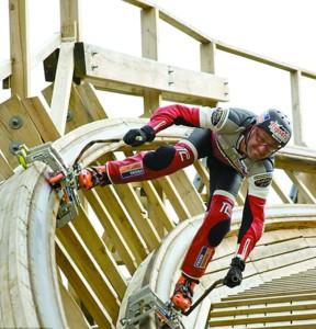 別看Dirk在過山車上 “風(fēng)馳電掣”,十分風(fēng)光,其實(shí)他冒著巨大的風(fēng)險(xiǎn)。當(dāng)Dirk完成滑行后,他才長舒一口氣。由于這次滑行的過山車是全木制的,都由釘子固定,在高速滑行的過程中,任何一個(gè)突出的釘子都會(huì)使他喪命。不過Dirk絲毫不介意所承擔(dān)的風(fēng)險(xiǎn),對(duì)他來說,這才是冒險(xiǎn)的樂趣所在。