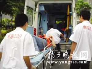 記者到現(xiàn)場(chǎng)時(shí),年輕女子已從事發(fā)現(xiàn)場(chǎng)地上,爬進(jìn)了離跳樓現(xiàn)場(chǎng)約30米的小區(qū)5號(hào)樓樓道內(nèi),她渾身是傷,躺在樓道內(nèi)渾身發(fā)抖。嘴中發(fā)出痛苦的呻吟聲。民警剛剛趕至,封鎖了現(xiàn)場(chǎng),同時(shí)呼叫120救護(hù)車增援。不一會(huì)兒,急救醫(yī)生趕到,迅速對(duì)受傷女子進(jìn)行診斷,與民警一道將受傷女子送上急救車。