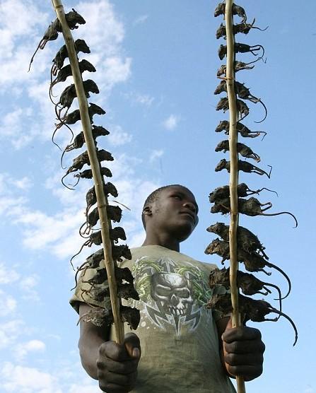 中國(guó)日?qǐng)?bào)網(wǎng)環(huán)球在線(xiàn)消息:你能想象嗎?處處被人喊打的過(guò)街老鼠如今在非洲國(guó)家馬拉維成為了當(dāng)?shù)厝搜壑械摹懊牢丁。?jù)英國(guó)《每日郵報(bào)》8月9日?qǐng)?bào)道,如今不少馬拉維當(dāng)?shù)厝藢㈦缰苹蛘唢L(fēng)干的熟田鼠穿成串沿街叫賣(mài),雖然田鼠“賣(mài)相有些猙獰”,但是銷(xiāo)路卻十分不錯(cuò)。