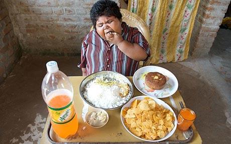 這個女孩名叫蘇曼·卡圖恩,住在印度西孟加拉邦。她一周要吃掉10公斤大米、24個雞蛋,6升牛奶和5公斤土豆。饑餓常常驅(qū)使她溜到鄰居家找食物。