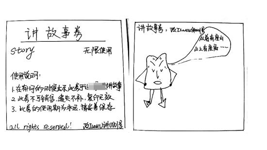 “故事券”:可以無(wú)限使用,小李心情郁悶的時(shí)候,小王就得使出渾身解數(shù)講故事逗她開(kāi)心。