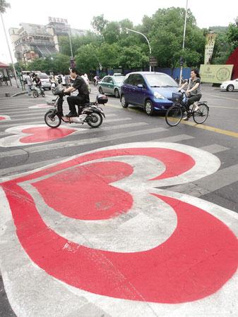杭州首條愛心斑馬線 陶玉其 董旭明 攝