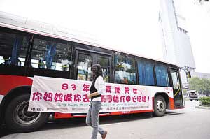 “83年后素質(zhì)美女,你媽喊你去心雨園婚介中心征婚”!昨日上午,南京鼓樓廣場(chǎng)前,一輛公交車帶著兩側(cè)的“雷人”橫幅,緩緩駛過(guò),吸引了眾多市民觀看。
