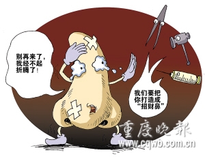 在醫(yī)生追問(wèn)下,陳女士道出“秘密”:她一直做服裝生意,但近幾年來(lái)一直不順。前年底,和一個(gè)溫州商人談一筆大生意失敗后,郁悶的她找到一個(gè)“半仙”看相,“半仙”稱(chēng)她的鼻子不招財(cái)。陳女士深信不疑,決定不惜血本要將鼻子整形成“招財(cái)鼻”。
