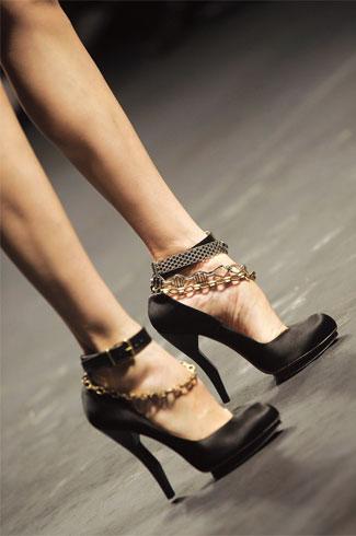 不景氣時期,女人的鞋跟似乎會變高,很顯然,本季天馬行空的鞋形正是對經(jīng)濟蕭條的一種藐視。然而關(guān)于高跟鞋究竟象征著女權(quán)還是男權(quán)的爭論已經(jīng)持續(xù)了幾十年,時尚史學家Giorgio Riello 與Peter McNeil 在《鞋子:從涼鞋到球鞋的歷史》一書中指出,1920 年代的婦女參政多以穿高跟鞋來展現(xiàn)女性特質(zhì),她們穿著鈕扣靴和高跟運動鞋向世人證明,參政并不會抹煞女人味。