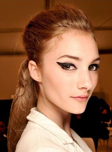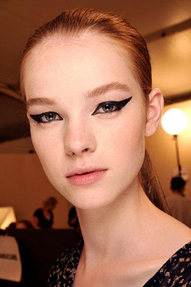 你所能看到的這種,線條干凈、輪廓分明、顏色飽和濃重、在眼角舒展上揚(yáng)的黑色眼線,屢屢登上T臺(tái),在Chanel、Dolce &Gabanna、Cavalli的模特們的臉上演繹得淋漓盡致。
