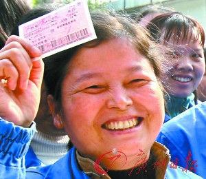 對(duì)于外來(lái)工來(lái)說(shuō),一張回家過年的車票,是一年辛勞的最大安慰! ∮浾哳伿咳 攝
