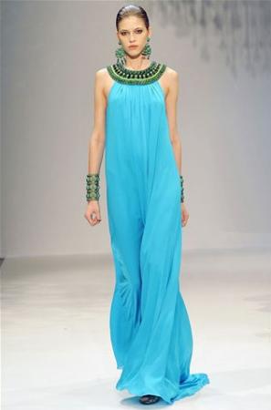披掛、纏繞、垂懸……那些隨著步伐搖曳輕飄的衣幔裙擺,是專屬女人的夢幻和典雅。而本季希臘女神裙最大的特點,是來自鮮亮色彩賦予的活力,整片亮色大面積的使用,大概是要在低靡的經(jīng)濟環(huán)境下帶來更多振奮人心的力量。
