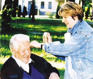 1996年自感“有點(diǎn)肥”的塔季揚(yáng)娜和父親葉利欽在一起。