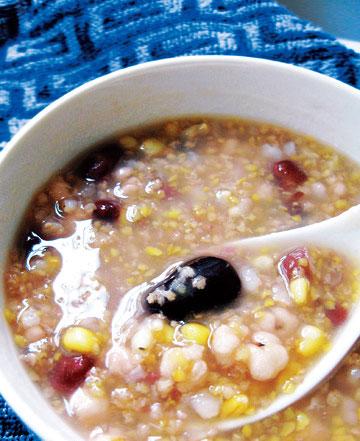 臘八粥又叫“七寶粥”、“五味粥”。最早的臘八粥是用紅小豆來煮,后來經(jīng)過演變,再加上地方特色,逐漸豐富多彩起來。清代《燕京歲時記》中寫道:“臘八粥者,用黃米、白米、江米、小米、菱角米、栗子、紅豇豆、去皮棗泥,合水煮熟;外用染紅核桃仁、杏仁、瓜子、花生、榛穰、松子及白糖、紅糖、葡萄等以作點染。切不可用蓮子、扁豆、薏米、桂圓,用則傷味。每至臘七日,則剝果滌器,終夜經(jīng)營,至天明時粥熟矣!