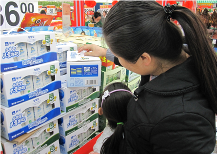 圖為媽媽為孩子選購兒童牛奶