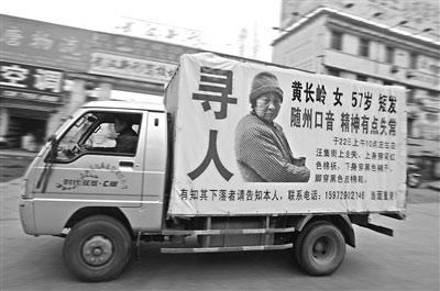 過年時,五旬母親走親戚時在新洲街頭走失,為了尋人,孝子雇傭一輛貨柜車,在車廂上掛起大幅海報,呼喚母親盡快回家。昨日上午,在東西湖吳家山三秀路,這輛小型貨柜車十分醒目(見圖)。