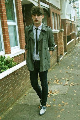 1.軍綠色風(fēng)衣 topman 2.白色襯衫 ZARA 3.窄領(lǐng)帶 H&M 4.黑色瘦腿褲 topman 5.黑白復(fù)古鞋