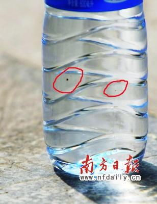 近日,有市民發(fā)現(xiàn)600毫升瓶裝的益力礦泉水內(nèi)漂浮著黑色物質(zhì),大的有小指甲般,小的需要湊近才能看清。昨日,益力礦泉水東莞片區(qū)主管向消費(fèi)者解釋說:那是水中鐵錳含量超標(biāo),喝了有益無害。但這位主管提供的水樣檢驗(yàn)報(bào)告,恰恰缺漏了消費(fèi)者發(fā)現(xiàn)有問題的批次。