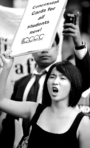 本月初,近千名留學(xué)生在悉尼舉行了爭取權(quán)益的游行,直接起因就是公交優(yōu)惠卡問題———在留學(xué)生最多的新南威爾士州和維多利亞州,只有澳大利亞本地學(xué)生才能獲得公交優(yōu)惠卡,享受乘坐汽車、火車5折的待遇。