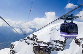 我總有點狹隘地認為外國人都有點“似乎瘋狂”,一逮著點時間就去登山、滑雪。從山下徒步登上山頂?shù)倪@股累暫且不提,爬上山后再從高高的懸崖跳下去,炫自己的滑雪技術(shù)的這股勇氣真是可歌可泣,像我這樣缺少膽量的人自然是不能做此類瘋狂之事,可是面對皚皚白雪和巍巍高山總是心有不甘,而連接雪山的纜車則正好可以滿足我不費吹灰之力也可飽覽群山的愿望。