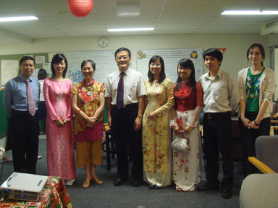 聚會中,任共平與中國留學(xué)生進行交談,了解他們的學(xué)習(xí)和生活情況,遠離祖國的莘莘學(xué)子們激動不已,大家表示一定努力學(xué)習(xí),與各國留學(xué)生發(fā)展友誼,共建美好地球家園。格里菲斯大學(xué)環(huán)境和人口健康中心主任朱明若教授用很具中國特色的歡迎辭讓每位參加者感受到了國際大家庭的溫暖。