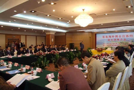 2009“百名海外博士江蘇行”第三站走進(jìn)了新亞歐大陸橋東橋頭堡——連云港市。連云港市委、市政府舉行了隆重的推介會(huì),誠(chéng)邀海外博士來(lái)港創(chuàng)新創(chuàng)業(yè)。百名海外博士與連云港市各政府部門(mén)、企事業(yè)單位代表進(jìn)行了近距離地對(duì)接洽談。市委常委、常務(wù)副市長(zhǎng)張同生、市委組織部副部長(zhǎng)、人事局局長(zhǎng)馬炳軍等領(lǐng)導(dǎo)出席了此次會(huì)議。