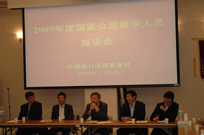 座談會上,針對在日公派留學(xué)生應(yīng)該注意的具體事項以及相關(guān)學(xué)習(xí)生活等事宜,主要負(fù)責(zé)公派留學(xué)生工作的一等秘書秦正麥做了詳細(xì)說明。他介紹目前教育處已經(jīng)啟用了國家公派留學(xué)人員信息管理平臺,希望初次赴日留學(xué)同學(xué)盡快登陸此網(wǎng)站并進行注冊,以便于教育處及時了解每一位公派留學(xué)人員的最新動態(tài),更好、更及時地為每一位公派留學(xué)生服務(wù)。他提醒廣大公派留學(xué)生人員要特別注意安全問題,特別是交通安全。要遵守日本的各項法律、法規(guī);同時他希望同學(xué)們在學(xué)習(xí)中,要善于發(fā)現(xiàn)和學(xué)習(xí)日本的優(yōu)點,要學(xué)有所成,為祖國的現(xiàn)代化建設(shè)服務(wù)。