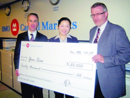 中新網(wǎng)1月15日電 據(jù)加拿大《明報》報道,加拿大滿地可銀行(BMO)一年一度的“資本市場高級研究獎學金”已于日前公布了評選結果,約克大學數(shù)學和統(tǒng)計學博士生,中國留學生喬云(Yun Qiao)憑借其博士論文贏得此項殊榮,獲得由該銀行頒發(fā)的2萬元獎學金。