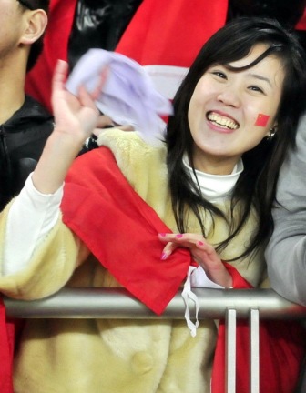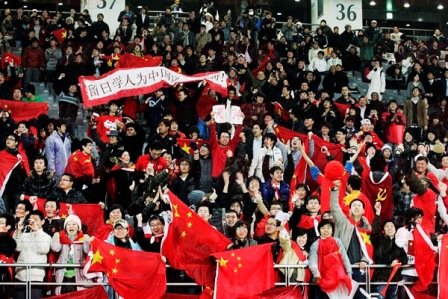 中新網(wǎng)2月11日電 據(jù)日本《中文導(dǎo)報(bào)》報(bào)道,2月10日,東亞四強(qiáng)賽進(jìn)行第二輪爭(zhēng)奪,在東京味之素體育場(chǎng)中國(guó)男足迎戰(zhàn)韓國(guó)男足,中國(guó)隊(duì)最終以3-0大勝韓國(guó)隊(duì),一舉改寫在國(guó)際A級(jí)賽事上32年對(duì)韓不勝的尷尬歷史?磁_(tái)上約二千名中國(guó)留學(xué)生的吶喊助威聲也貫穿了整場(chǎng)比賽。
