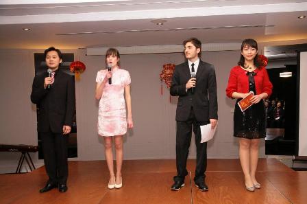 使館教育處王魯新參贊首先給到場(chǎng)的各位嘉賓和所有觀眾拜年并送出虎年的美好祝愿,并回顧了中國(guó)在過(guò)去一年金融危機(jī)時(shí)期經(jīng)濟(jì)持續(xù)發(fā)展的良好勢(shì)頭和在國(guó)際舞臺(tái)上的重要地位,同時(shí)展望了祖國(guó)更美好的2010年,即興用英語(yǔ)做了發(fā)言,在熱烈掌聲后開始了文藝演出。