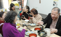 招待會(huì)上,有烤魚(yú)、入味米飯,以及當(dāng)?shù)赜忻挠驼ǘ垢u湯。“五友會(huì)”代表、來(lái)自中國(guó)的松山大學(xué)留學(xué)生王欣(28歲)帶來(lái)的家鄉(xiāng)茶和中華風(fēng)味沙拉也大受歡迎。很多參加者都來(lái)咨詢同學(xué)們?cè)趺醋,希望回家后自己嘗試一下。在柳井町商店街經(jīng)營(yíng)床上用品店的田中愛(ài)子(74歲)非常開(kāi)心的說(shuō):“平時(shí)很少有機(jī)會(huì)與商店街以外的居民一起聚會(huì),這次的招待會(huì)真是很好的嘗試。招待會(huì)上的菜肴也非常好吃”。(王婧)