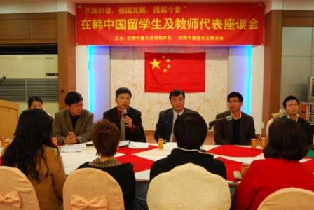 座談會上學(xué)生和教師代表踴躍發(fā)言,暢談自己的想法。韓國孔子學(xué)院的王春雨老師向在座的留學(xué)們介紹了西藏的歷史概況,讓同學(xué)們對西藏的過去和現(xiàn)狀有了更加清晰的認(rèn)識。來自韓國慶熙大學(xué)國語國文專業(yè)的研究生、藏族女學(xué)生達(dá)哇措說,第十一世班禪額爾德尼?確吉杰布被增補(bǔ)為中國全國政協(xié)委員,成為有史以來最年輕的全國政協(xié)委員,這讓她感到非常自豪。達(dá)哇措說,如果沒有祖國的少數(shù)民族政策,那么她到韓國留學(xué)是不可能實(shí)現(xiàn)的。另外,她還對中國駐韓國使館教育處對她的幫助表示感謝。苗族學(xué)生楊李現(xiàn)在在首爾大學(xué)讀研究生,她說,我十分感激國家的少數(shù)民族政策,與漢族同學(xué)在一起學(xué)習(xí)時(shí),我沒有因?yàn)槭巧贁?shù)民族而感到與其他人有什么不同,祖國是56個(gè)民族的大家庭,無論是苗族、藏族還是漢族都是大家庭中平等的一員,都是祖國的主人。(莽九晨)