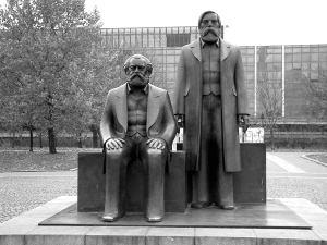 馬恩銅像雕塑,始建于上世紀七十年代的東德時期。據說,關于馬克思坐著而恩格斯站著的造型構思,有兩種解釋,一是馬克思是德國人而恩格斯不是德國人,二是恩格斯是馬克思的戰(zhàn)友和學生。