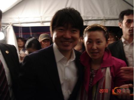 在大阪日本橋開辦四川料理店鳳家的中國(guó)女留學(xué)生汪哲有幸接到了邀請(qǐng)函,不但進(jìn)入了會(huì)場(chǎng),還坐在橋下知事很近的座位上,演出結(jié)束后,汪哲突然產(chǎn)生了一股勇氣,來(lái)到了橋下知事的身邊,她大膽地拉住了橋下知事的手,向橋下知事介紹了自己在大阪宣傳上海世博會(huì)的努力,橋下知事也被上海世博會(huì)的慶祝氣氛深深地感染了,顯得很有興趣地聽完了汪哲的自我介紹;接著汪哲乘勝追擊邀請(qǐng)橋下知事與她合影留念,并留下了珍貴的紀(jì)念照片。