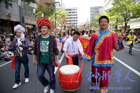 5月3日,福岡市一年一度的“博多打鼓節(jié)”正式拉開帷幕。九州地區(qū)中國學(xué)友會派出了來自九州大學(xué)、九州女子大學(xué)、九州外國語學(xué)院、福岡工業(yè)大學(xué)等63名同學(xué)組成的“中國留學(xué)生方隊”參加此次活動。
