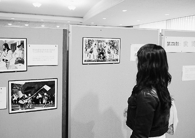 展覽共展出近100幅照片,向中國(guó)留學(xué)生以及日本大學(xué)生展示了世博會(huì)從籌備到開(kāi)幕的盛況。圖為一名早稻田大學(xué)的學(xué)生在參觀圖片展。(季春鵬)