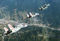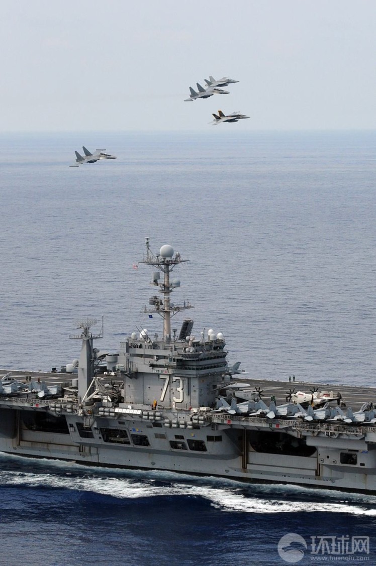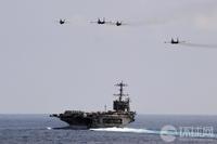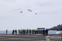 馬來西亞海軍的蘇-30戰(zhàn)機(jī)與美國海軍的F/A-18戰(zhàn)斗機(jī)組成編隊從華盛頓號航母上空飛過