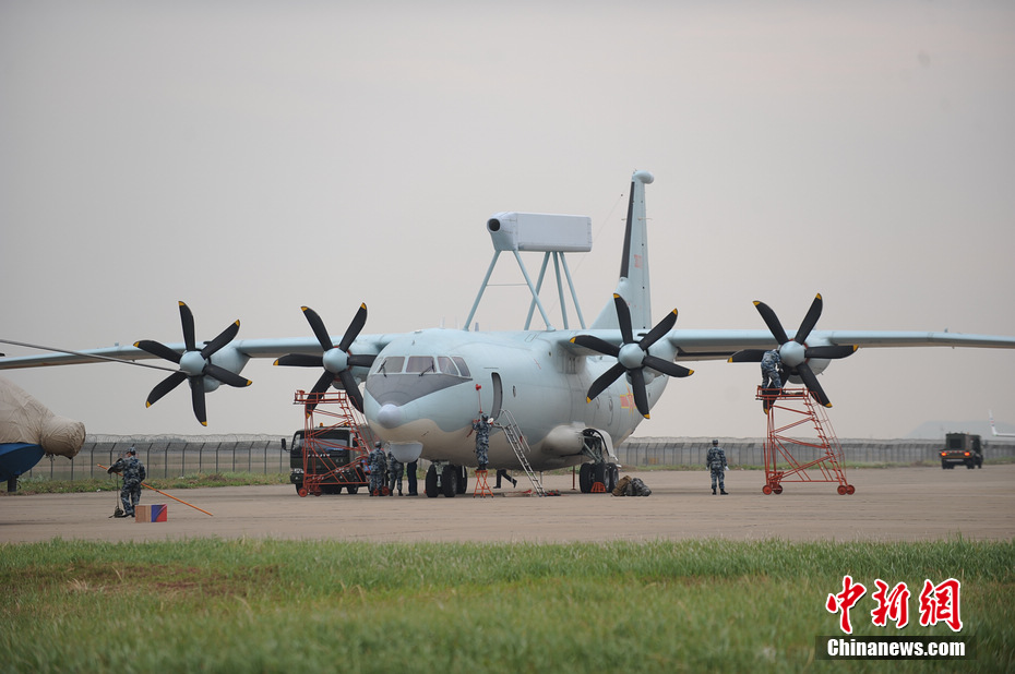 空警-200機載雷達天線類似體操用的平衡木,是中國自行研制的一種輕型、全天候空中型預警飛機,在運8C型機基礎上進行了80%以上改動而成。曾在2009年國慶閱兵中現(xiàn)身。(完)
