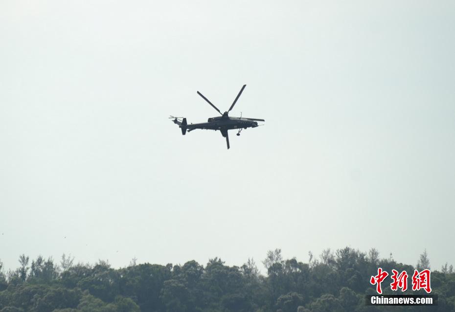 中新網(wǎng)珠海11月11日電(陳海峰) 11日上午,中國武直10武裝直升機首次在珠海上空公開亮相,并進行了適應(yīng)性飛行訓(xùn)練,其做出倒飛、低空盤旋、萊維斯曼翻轉(zhuǎn)等多個精彩動作,在短暫現(xiàn)身后離開航展上空。