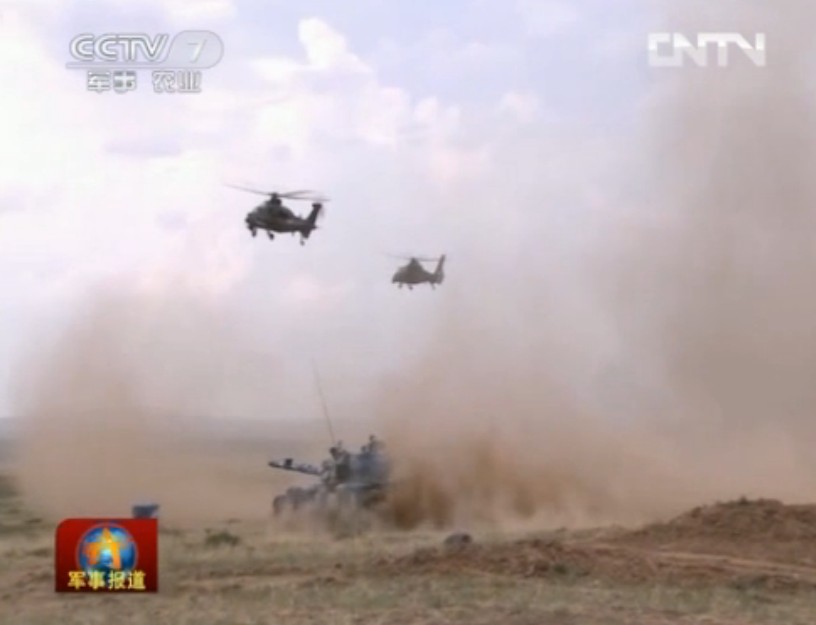 實拍直10直19武裝直升機高難課目訓練(來源:央視網(wǎng))